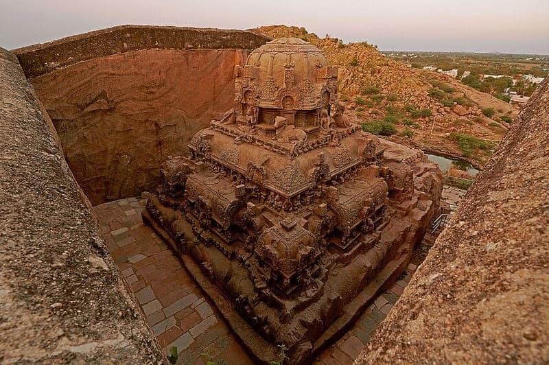 สร้างขึ้นในศตวรรษที่ 8 และถูกแกะสลักลงในหินจากเนินเขา เป็นวัดที่ทำจากหินทั้งหมดและมีเพียงครึ่งเดียวของวัดที่เสร็จสมบูรณ์ ความประณีตในการแกะสลักหินของที่นี่ดึงดูดนักท่องเที่ยวและนักวิจัยหลายคนจากทั่วโลก